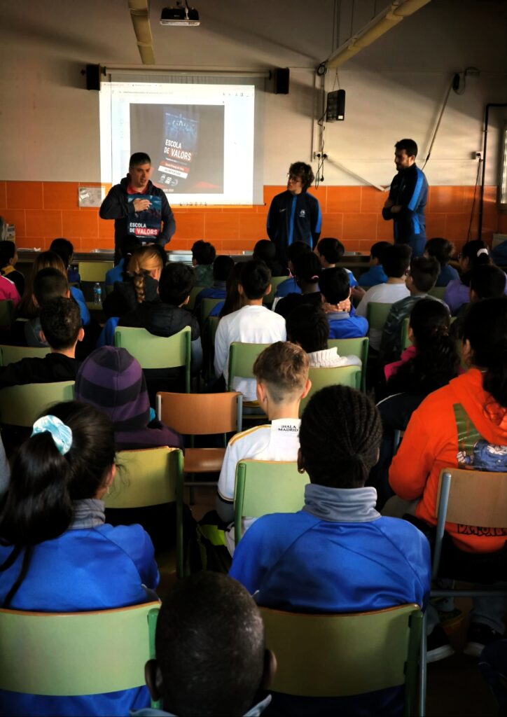 Una visita on jugadors i alumnes van poder interactuar amb els valors, mitjançant vídeo, xerrada i jocs i van poder comprovar que aquests valors, els humans, son els mateixos a l’esport, a l’escola o en qualsevol moment de la nostra vida, quan estem amb els amics, amb la família o en el treball.