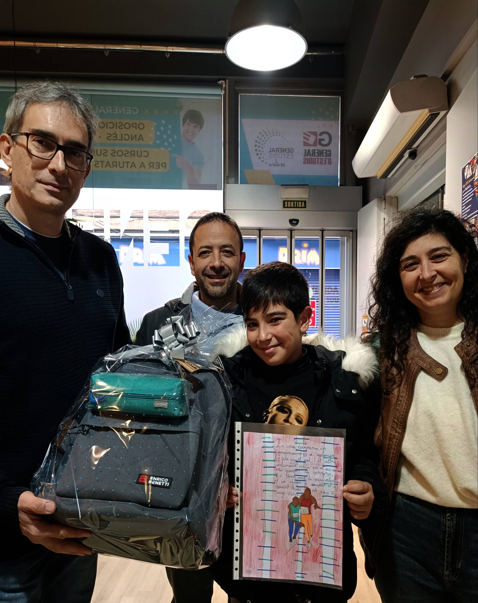 D’aquesta manera un dels responsables del centre feia entrega d’un kit de material escolar al Pol acompanyat pel seus pares.
