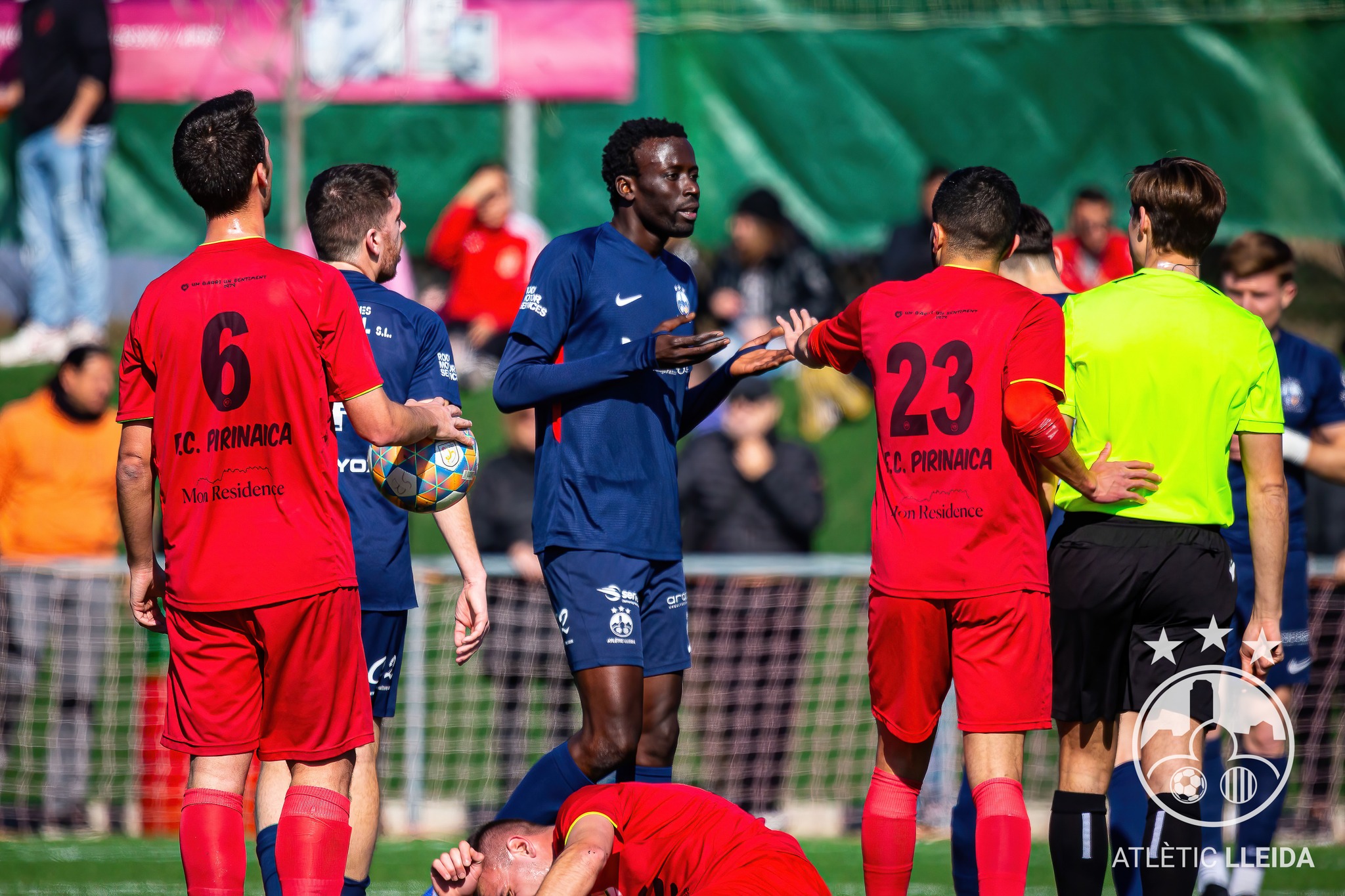 L’Atlètic Lleida ha començat a crear perill i Valcàrcel al minut 16 l’ha tingut en un u contra u davant el porter que ha acabat rebutjant a corner. Fall ho ha provat de cap minuts més tard, i Joan Domingo al 38, en una ràpida incorporació a l’atac, no ha pogut culminar el seu remat en gol quan ja es cantava.