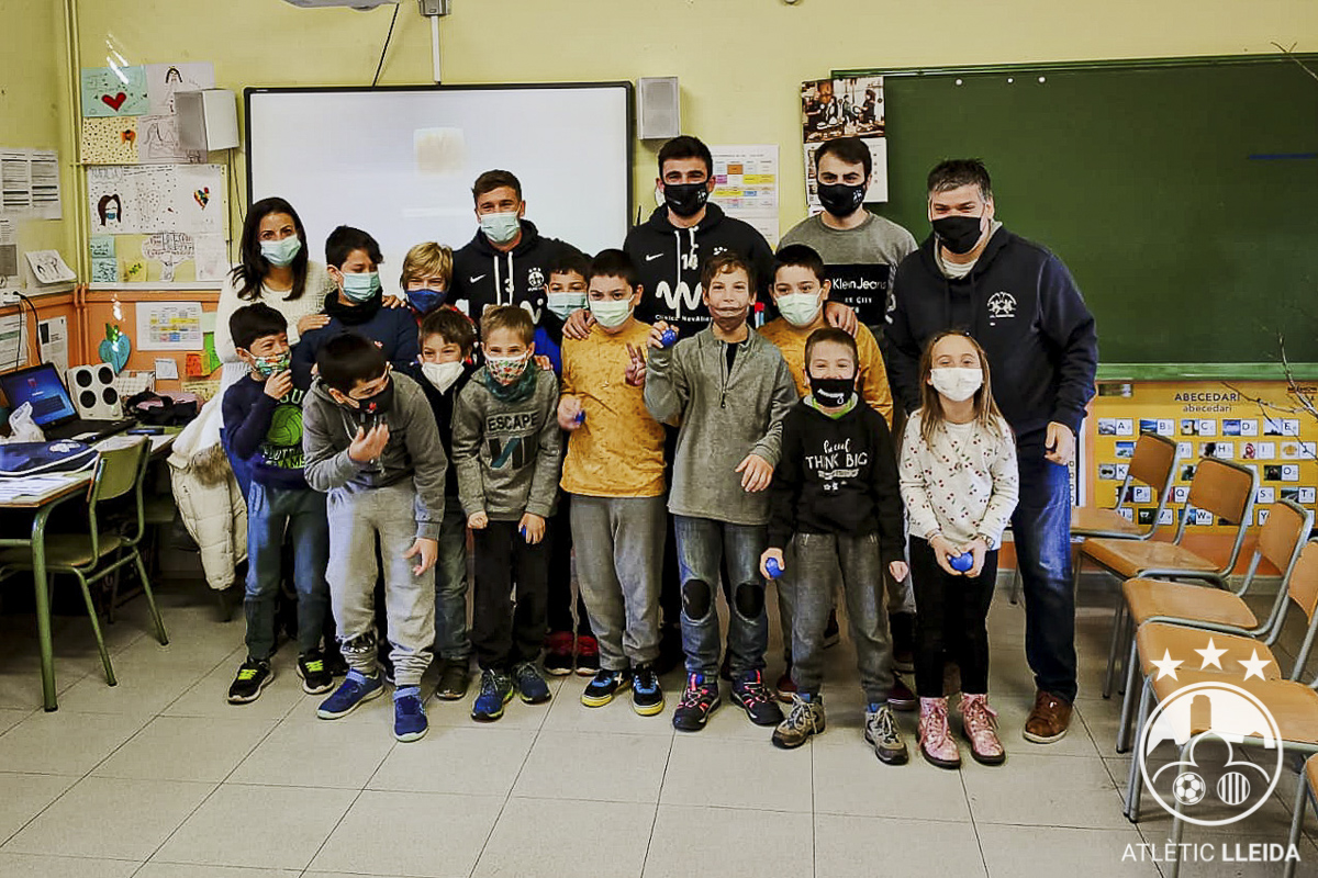 Aquest divendres s’ha iniciat la campanya «Escola de Valors» que promou l’Atlètic Lleida amb el suport de General d’Estudis i de la Regidoria d’Educació, Cooperació, Drets Civils i Feminismes. La primera visita ha estat al col·legi Creu del Batlle. Dos jugadors, Genís Morera i Mateu Bibiloni, i dos directius, Ramon Folguera i Andreu Voltes, han parlat amb els nens i nenes sobre els valors de l’esport i han intercanviat opinions. Posteriorment, ha tingut lloc el torn de preguntes, l’entrega d’un obsequi per part dels jugadors als nens i nenes i d’un dibuix d’aquests a l’equip, dibuix representatiu dels valors, on el/la guanyador/a rebrà un premi de General d’Estudis, i finalment, una foto de família per acabar la visita.